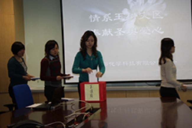 地震无情,人间有爱。2010年4月26日,江苏圣奥工会在上海运营中心发起了“玉树地震募捐活动”。募捐仪式上,江苏圣奥首席执行官兼首席财务官Stephen和江苏圣奥工会主席兼研发副总裁陈新民分别发起倡议,员工捐款踊跃。截止目前,收到上海运营中心和泰州办公室爱心捐款共12783.5元人民币。