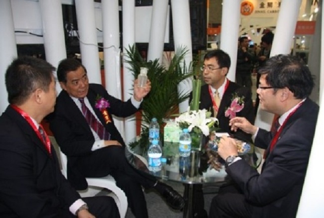 图:香槟祝酒,开幕式上,公司领导层预祝本次展会举办成功。