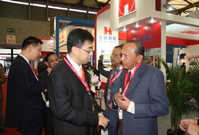 图:会展期间,公司CEO蔡铮琦与印度客人正在进行工作交流。