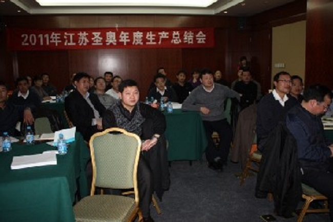 2012年1月12~13日,江苏圣奥2011年年度生产总结会在上海运营中心二楼会议室召开。本次会议的主题是:“创新.优化 精益生产”。公司COO高世明先生带领大家对这个主题进行了详细解读:“创新”是圣奥的核心价值观之一,也是圣奥发展和壮大不变主题;“优化”实在创新的基础上,不断优化工艺技术、优化管理流程,使创新的成果发挥到极致;“精益生产”是目前工厂生产中追求和期望的生产方式,是发挥全员的智慧,不但涵盖“创新和优化”管理流程和思维,而且对整个生产管理流程进行优化,减少生产过程的浪费,这里的“精”可以解读为“精细化的管理手段,精打细算的考核体系和生产出满足市场需求的精品”。