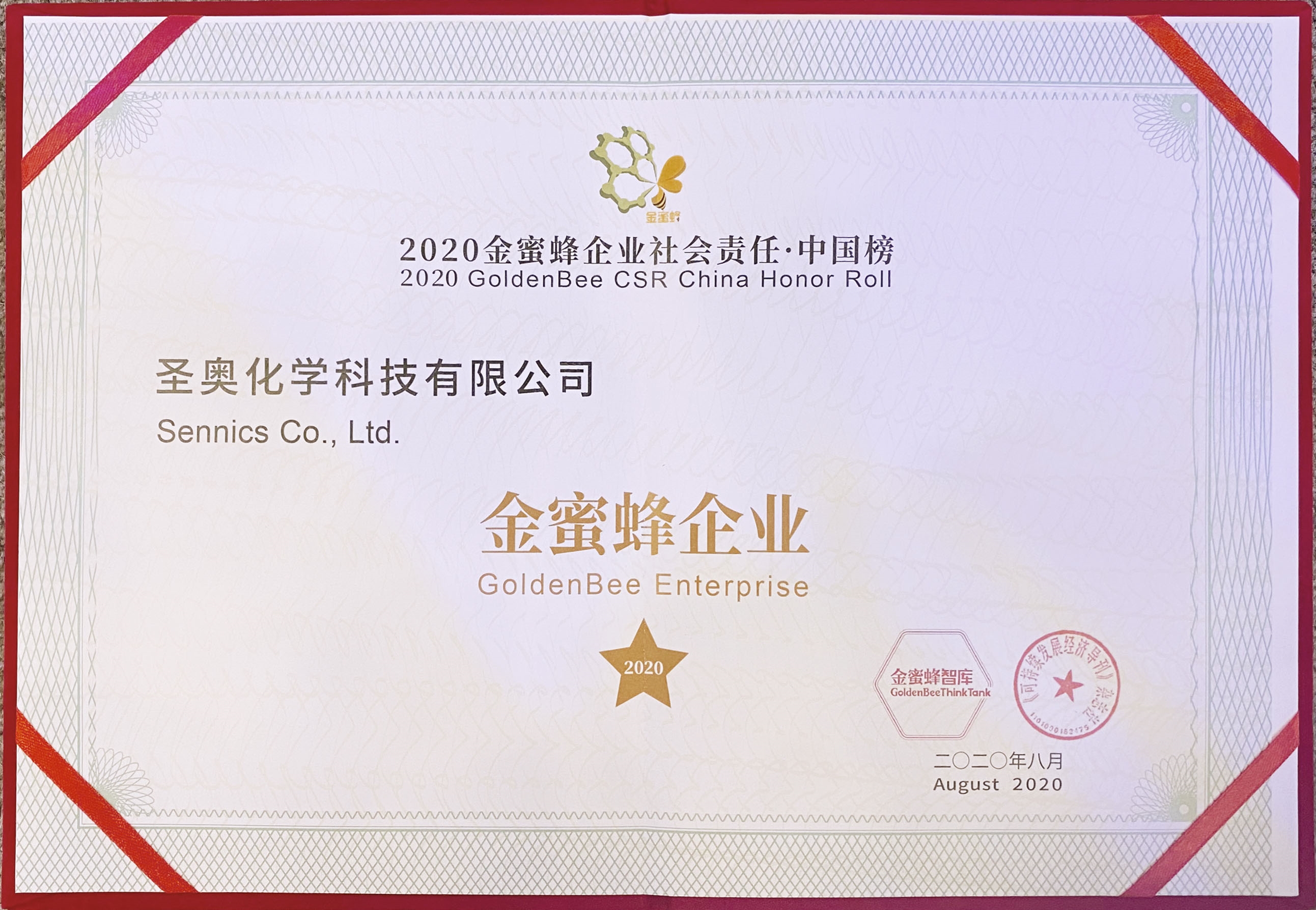 8月6日,第十五届金蜜蜂中国企业社会责任国际论坛暨“2020金蜜蜂企业社会责任 ? 中国榜”发布典礼在京举行,圣奥化学在论坛上发起“金蜜蜂全球企业社会责任2030倡议”新行动,发布“SCI-MAN 2030”赋能聚合物添加剂行业可持续发展倡议,这是圣奥化学深入践行企业社会责任的积极承诺,将联手其他企业助力联合国可持续发展目标(SDGs)的实现。