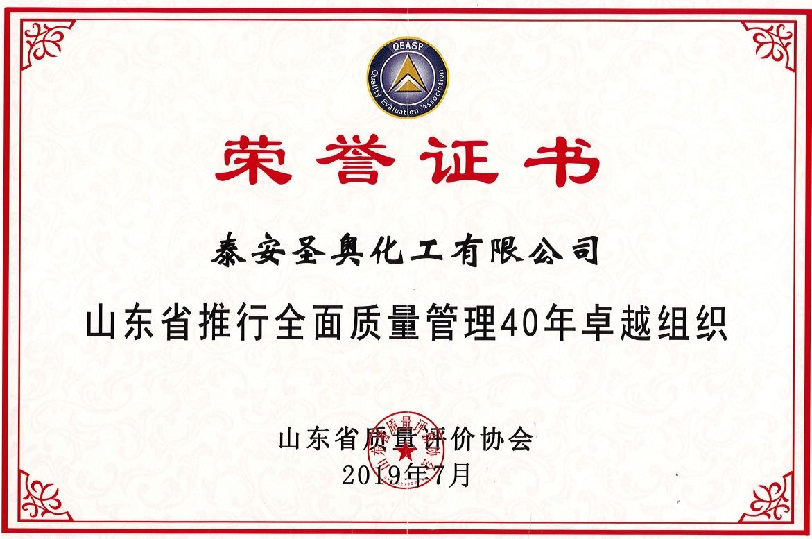 泰安圣奥荣获“山东省推行全面质量管理40年卓越组织”