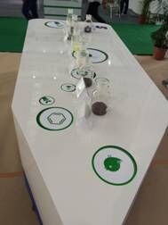 本次展会中,江苏圣奥的展台继承了一贯的蓝白色调风格,以“成就绿色里程”为主题,通过丰富的展板内容宣传绿色环保和可持续发展理念,展出产品中包含主打产品——防老剂6PPD、IPPD、S-TMQ以及不溶性硫黄、促进剂TBSI和中间体RT培司等,吸引了国内外专业客户前来咨询。为了增强与观众的互动性,本次展会还特别增加了极品赛车小游戏供观众参与。