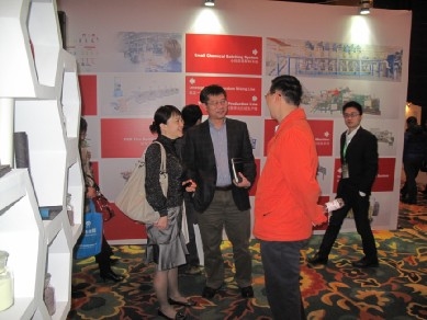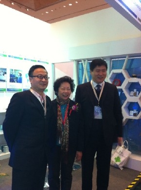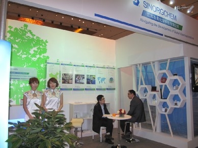 中国橡胶工业协会副会长、橡胶助剂专业委员会名誉理事长许春华在公司首席执行官助理唐志民的陪同下参观展台