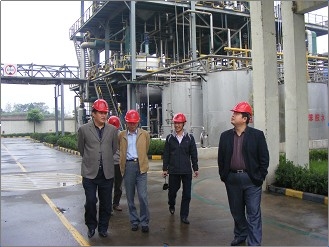 同时,范仁德针对安徽圣奥准备利用铜陵当地丰富的原料资源、热力资源和交通区位优势开发建设高分散二氧化硅项目,发展循环经济和清洁生产给予了充分肯定,他指出,2012年3月我国已启动绿色轮胎产业化战略,力争经过两年的努力,达到两个50%的目标:50%以上的子午线轮胎生产企业中,有50%的轮胎产量达到绿色轮胎标准。绿色轮胎将体现以下要求:使用环保、无毒无害符合欧盟RECAH标准的原材料,生产过程实现低能耗、低噪音、低粉尘、低烟气,产品具有低滚动阻力、低燃油消耗、出色的操纵稳定性、更短的制动距离、更好的耐磨性、可多次翻新等。高分散二氧化硅是绿色轮胎生产不可或缺的重要补强材料,是与“绿色轮胎”不可分割的概念,采用溶聚丁苯橡胶+新型硅烷偶联剂+高分散二氧化硅日益成为生产绿色轮胎的主流发展路线。他认为铜陵工厂生产高分散二氧化硅具有得天独厚的优势,公司应该抓住机遇将该产业做强做大,同时公司应将新型硅烷偶联剂作为下一步的研发方向。