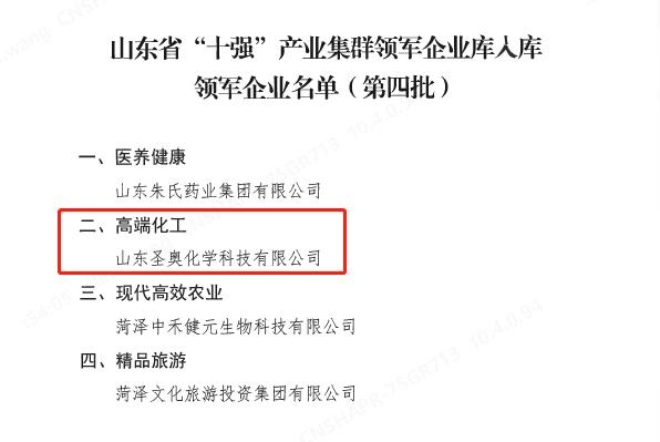 日前,山东省发改委公布第四批山东省“十强”产业“雁阵形”集群和领军企业名单,山东圣奥入选山东省“十强”产业集群领军企业库入库领军企业名单。