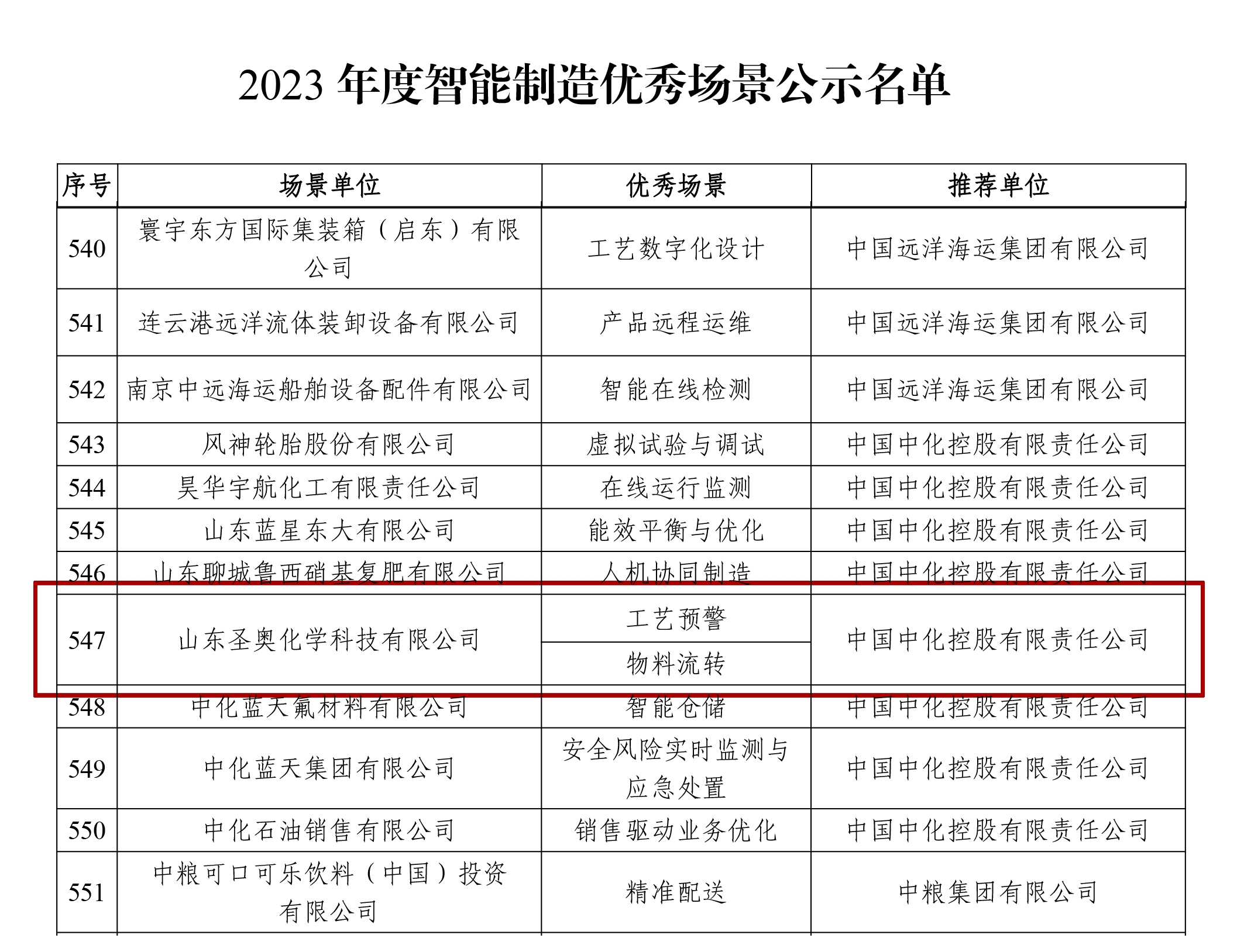 山东圣奥入选工信部2023年度智能制造优秀场景名单