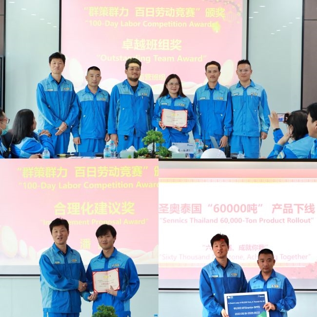 仪式现场,李昌树带领全体员工回顾了圣奥泰国自2022年5月19日试车成功以来三年多的发展历程,并为荣获2025年化工事业部“群策群力 百日生产劳动竞赛”卓越班组奖、合理化建议奖的团队和个人颁奖,强调全体人员要深入贯彻落实中国中化卓越运营体系升级的相关安排,以及化工事业部“锚定全年目标,全力冲刺突破”的具体要求,以实际行动深度参与“卓越运营百日冲刺行动”,确保全年生产经营目标高标准、高质量完成,达成挑战不可能目标。