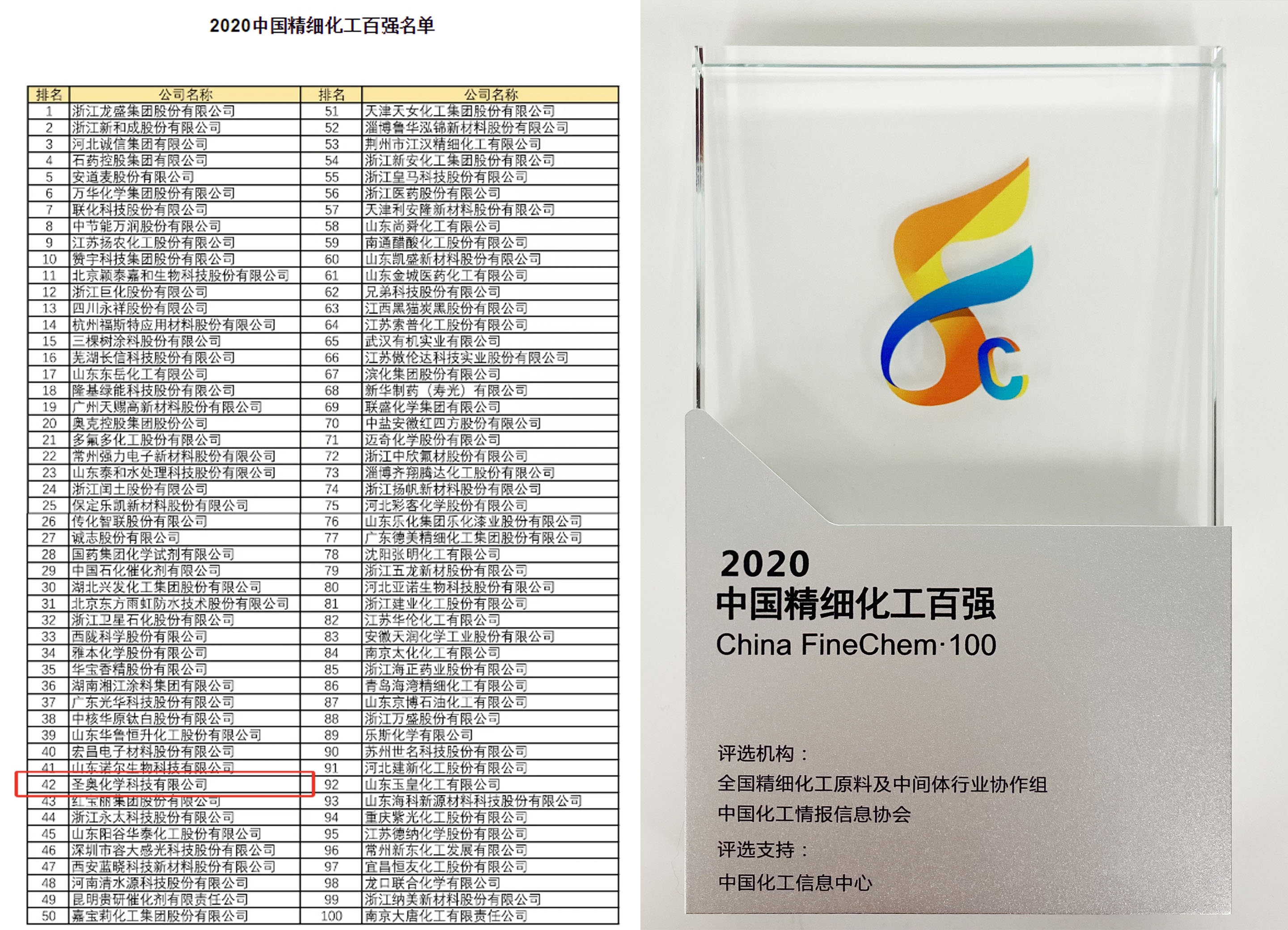 Sennics made the list of China's Top 100 Fine Chemical Companies in 2020 again