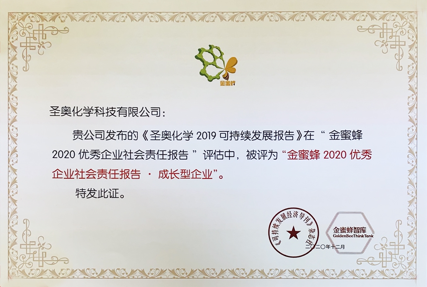 Sennics won the "Golden Bee 2020 Outstanding Corporate Social Responsibility Report - Growing Enterprise" award again. On May 18, 2020, the company released the Sennics 2019 Sustainability Report, which closely revolves around the goal of "comprehensively transforming into a science and technology-driven innovation platform company", and focuses on topics of technology innovation, safety and environmental protection, being customer-oriented, empowering partners, and employee care, to demonstrate a responsible brand image of Sennics comprehensively and systematically through detail-oriented case studies and a lot of data.